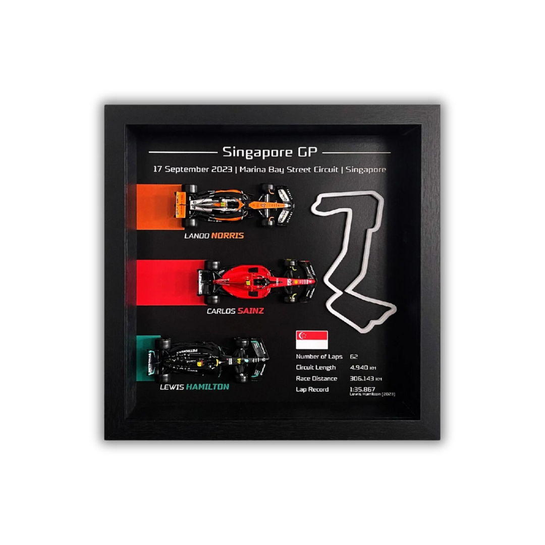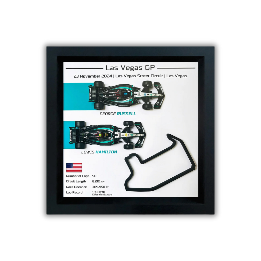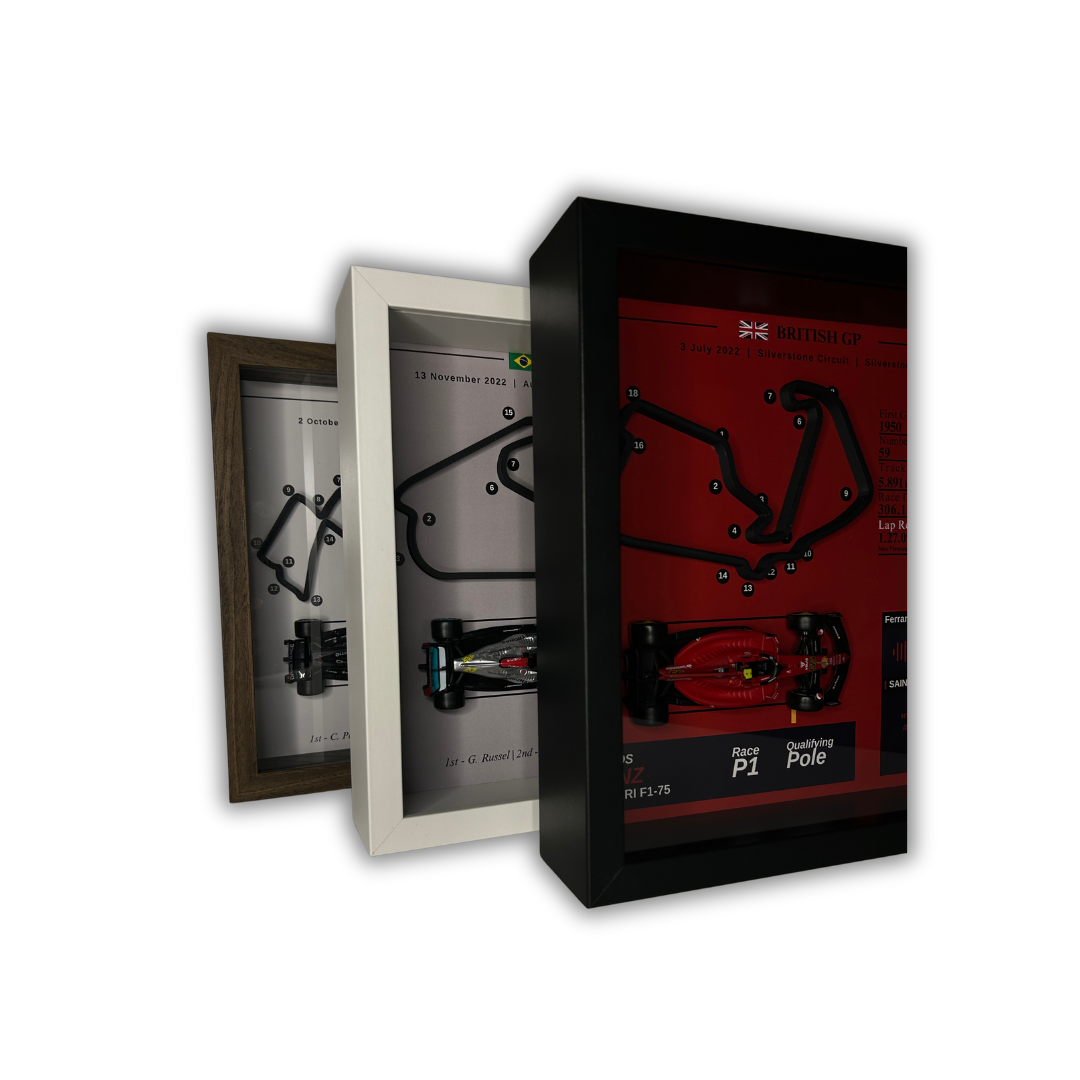 Each F1 3D Track Frame includes 1/43 scale model car, 10.5 X 10.5 IN (26X26CM) 3D frame, and a replica of the Grand Prix circuit. This combination brings the excitement of Formula 1 racing directly into your home, making for a stunning piece of memorabilia that celebrates the sport.