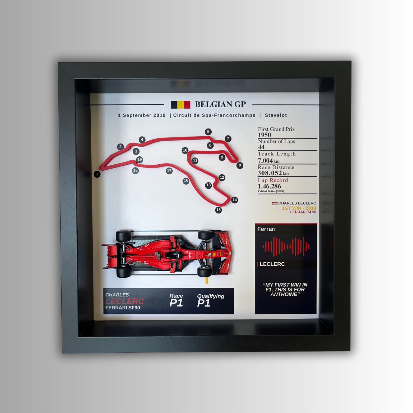Each F1 3D Track Frame includes 1/43 scale model car, 10.5 X 10.5 IN (26X26CM) 3D frame, and a replica of the Grand Prix circuit. This combination brings the excitement of Formula 1 racing directly into your home, making for a stunning piece of memorabilia that celebrates the sport.
